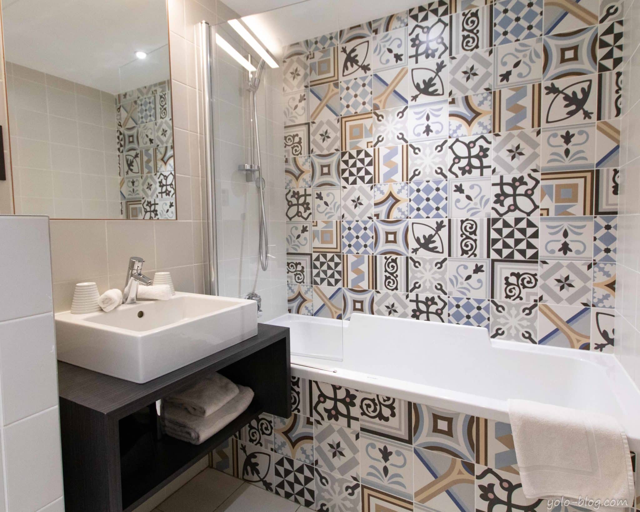 למלון 50 חדרים במספר גדלים: יחיד, זוגי, חדרי משפחה ודופלקס. אנחנו ישנו בחדר הזוגי מסוג ”סופריור", שהוא קצת יותר גדול מהחדר הזוגי הרגיל. החדר עוצב בגוונים שחורים - כחולים עם נגיעות נחושת, בעל תקרה גבוהה וחלונות גדולים, המכוסים בוילונות מפוארים. החדר כלל מיטה מאוד נוחה, שולחן כתיבה, מכונת קפה וקפסולות. המקלחת שעוצבה באופן ייחודי עם אריחים צבעוניים בטוויסט מרענן ומפתיע אל מול המראה של שאר חללי המלון, כללה מוצרים של החברה היוקרתית "לאוקסיטן" (L'Occitane), להשלמת החוויה הצרפתית.